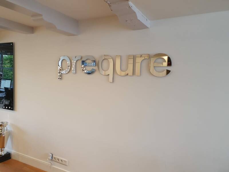 Voor Prequre in Amsterdam, een recruitment organisatie voor IT (zie www.prequre.com/nl/), verzorgden wij deze fraaie RVS gespiegelde gevel letters. Bosman Letters verzorgt allerlei soorten gevel letters, van vele soorten kunststof, aluminium, RVS (look) en zowel onverlichte als verlichte uitvoeringen.